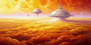 A world of contrasts -- above the clouds are beautiful domed cities, and below them is the harshest hellscape in the Sol System.